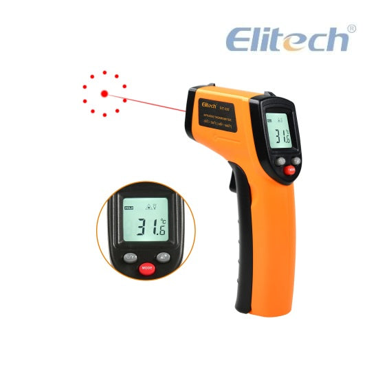 El termómetro infrarrojo Elitech DIT-220 ofrece lecturas de temperatura rápidas, precisas y sin contacto. Cuenta con láser para una precisión milimétrica, emisividad ajustable para diversas superficies y autocalibración inteligente con modos MÁX/MÍN/Ambiente. Diseñado para facilitar su uso, incluye una pantalla LCD retroiluminada, funcionamiento con un solo disparo, conmutación entre °C y °F y una batería con 12 horas de duración. Diseñado para ofrecer durabilidad y versatilidad, es perfecto para aplicaciones de climatización, automoción, industria y cocina.