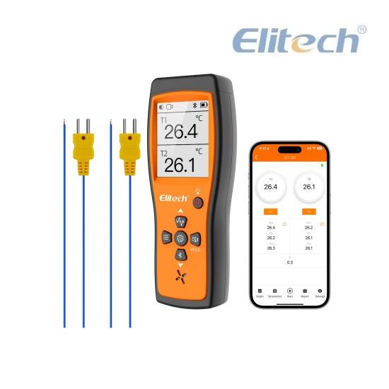 El termómetro digital ICT-220 de Elitech mide simultáneamente las temperaturas en dos ubicaciones, lo que le proporciona datos de temperatura completos para satisfacer diversas necesidades prácticas.