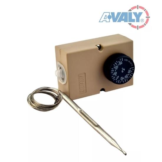 El termostato universal Avaly es un dispositivo que te permite controlar los sistemas de calefacción y refrigeración para mantener una temperatura determinada dentro de ciertos rangos. El termostato puede mantener la temperatura baja o alta dependiendo del nivel deseado. Este tipo de dispositivo utiliza mecanismos físicos, para para medir la temperatura del aire como activar los procesos que van a encenderla y apagar el sistema. En este se efectúan diversos sensores tecnológicos, desde tiras bimetálicas, bolitas de cera, bulbos y tubos de aire. Estos sensores reaccionan de acuerdo con los cambios en la temperatura y mediante expansión o contracción, activan los interruptores para subir o bajar la temperatura.